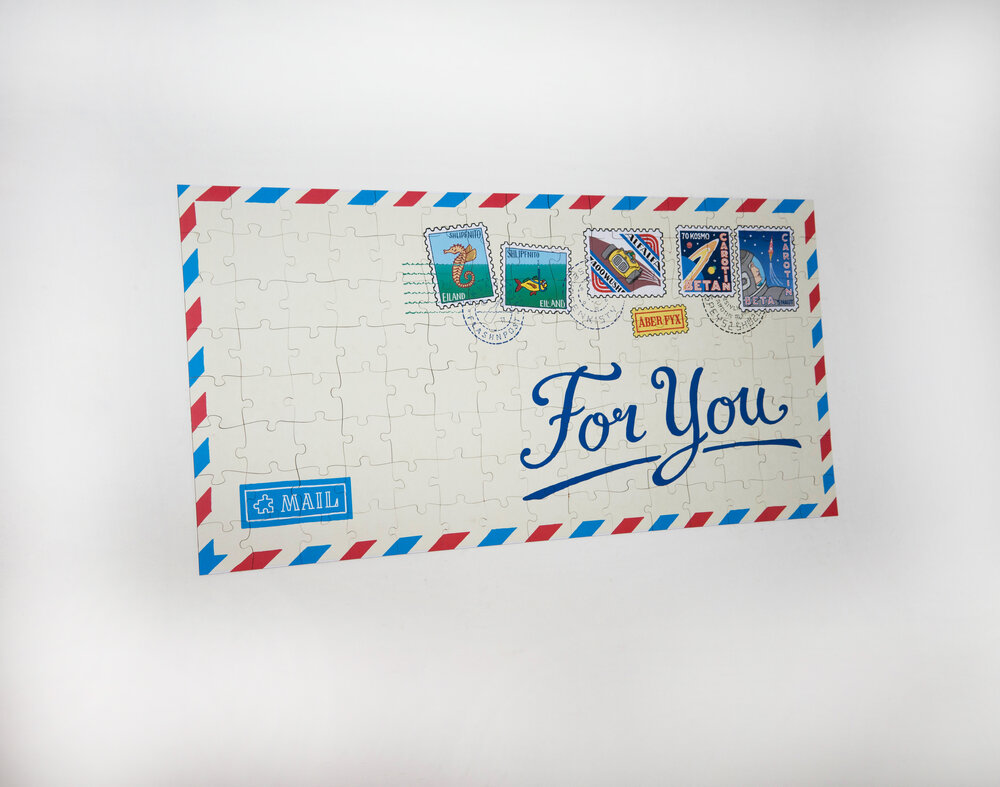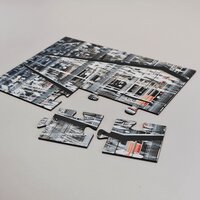 Durch die quadratische Form entsteht eine große, beschreibbare Fläche. Das Raster ermöglicht es größere Teile mit kleineren zu kombinieren. Auch die Kombination von beddruckten Puzzleteilen mit Blankopuzzleteilen ist möglich.