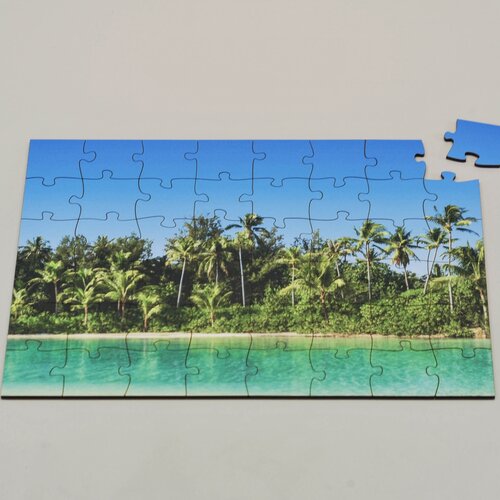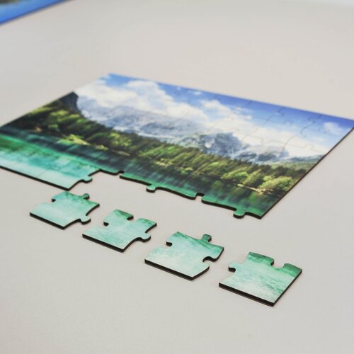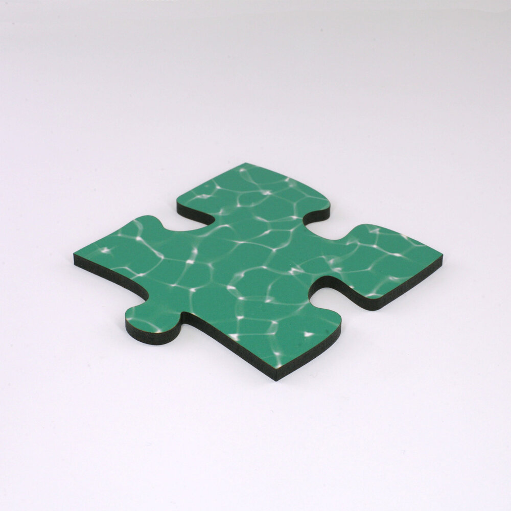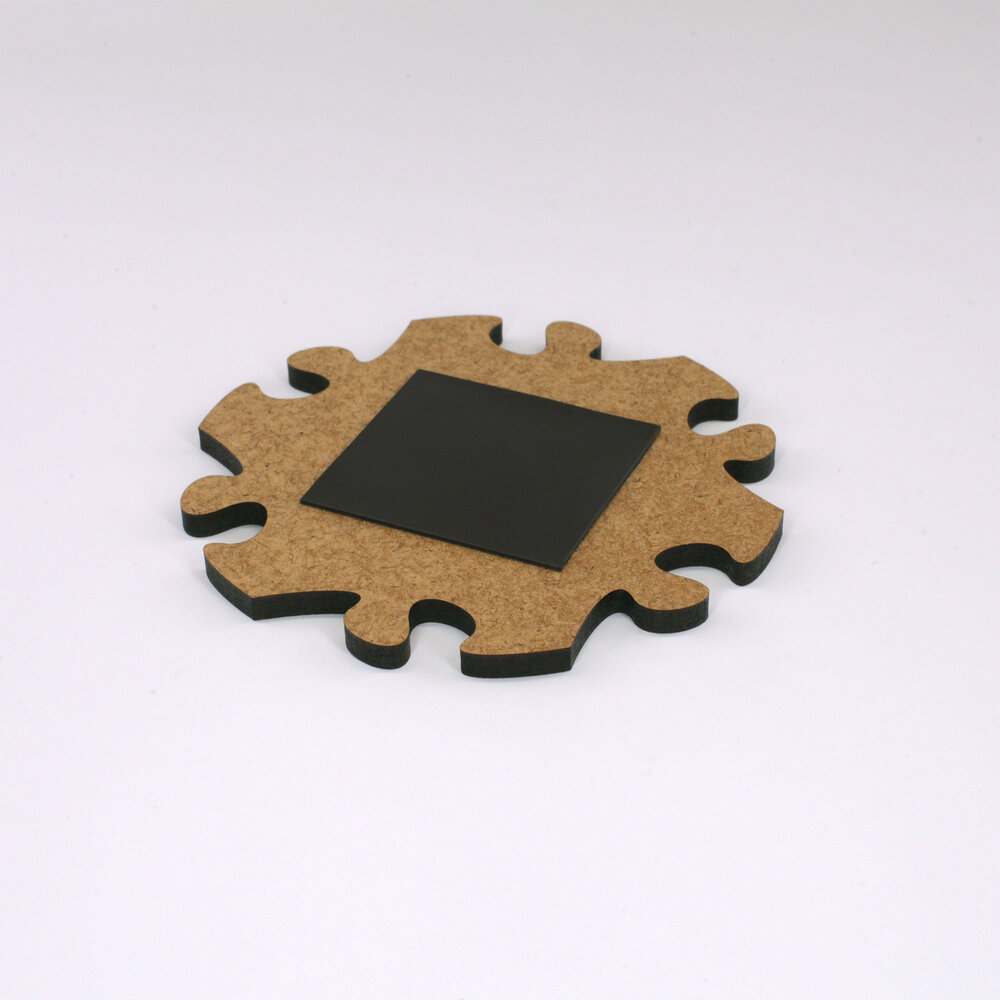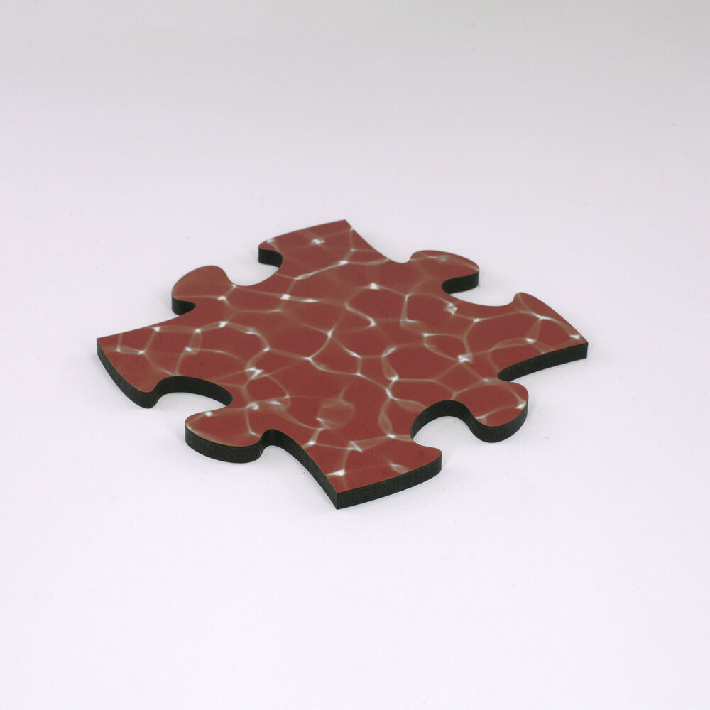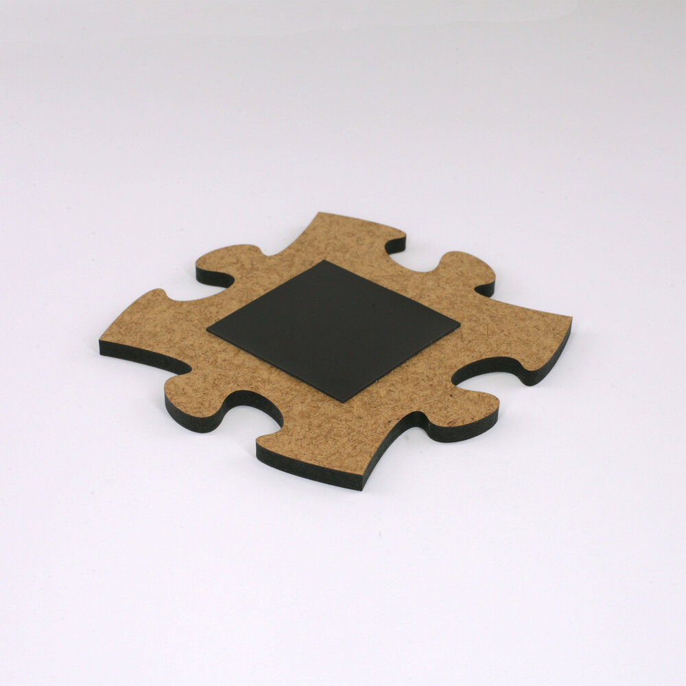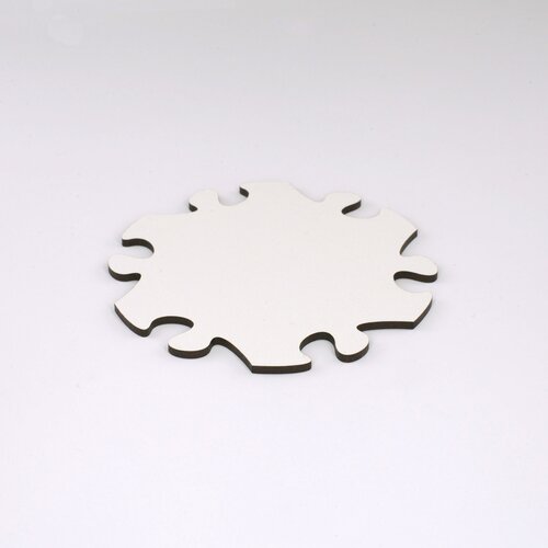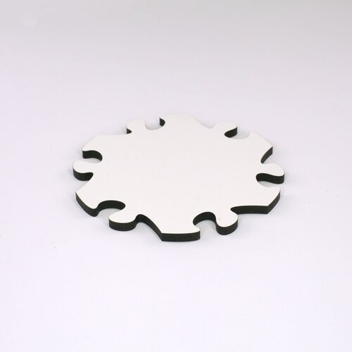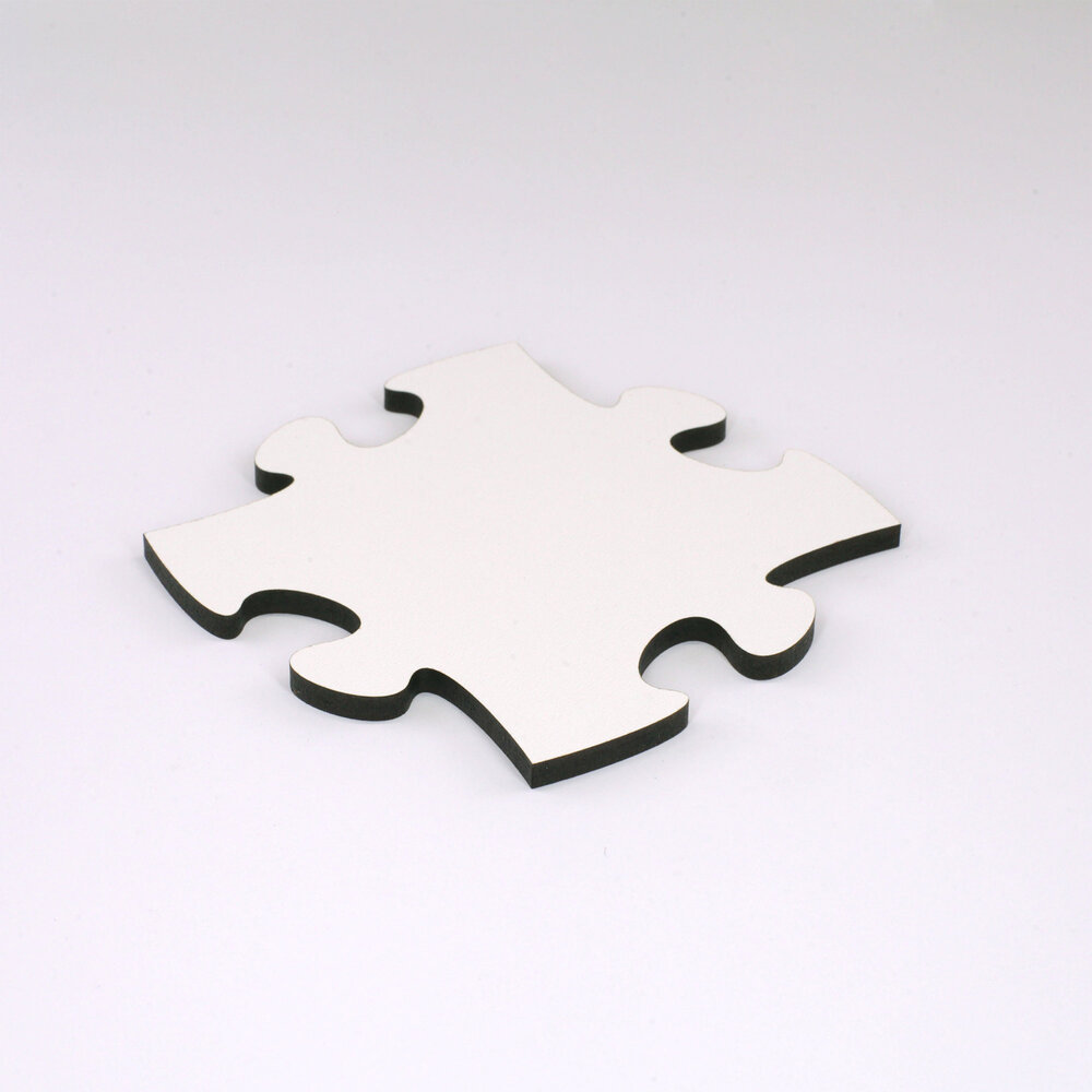 Blankopuzzles und Fotopuzzles sind aus hochdichter Faserplatte geschnitten. Dieses Material ist werkseitig auf einer Seite weiss beschichtet. Bei Blankopuzzles kommt diese nach vorn, bei Fotopuzzles auf die Rückseite.