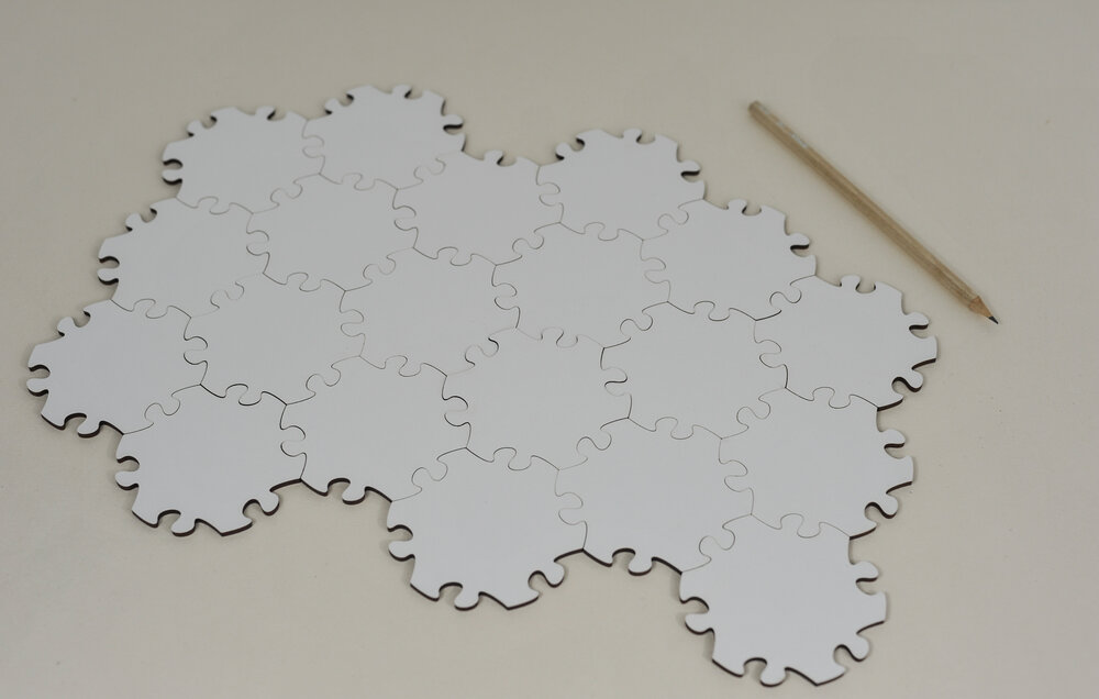 Modulare Puzzleteile oder Endlospuzzle haben alle die gleiche Form und können beliebig miteinander kombiniert werden und sind erweiterbar. Diese Teile werden meist einzeln bedruckt oder als Blankoteile geliefert. Wählen Sie oben die gewünschte Teilgröße aus, nun können Sie beliebig viele Teil aus den verschiedenen Materialien bestellen. Sollten Sie verschiedene Größen benötigen ist das nur möglich wenn Sie mehrere Bestellungen anlegen. Wir fassen die Bestellungen dann in einer einizigen Auftragsbestätigung zusammen.